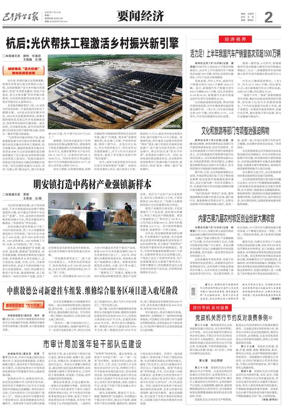 杭后:光伏帮扶工程激活乡村振兴新引擎
