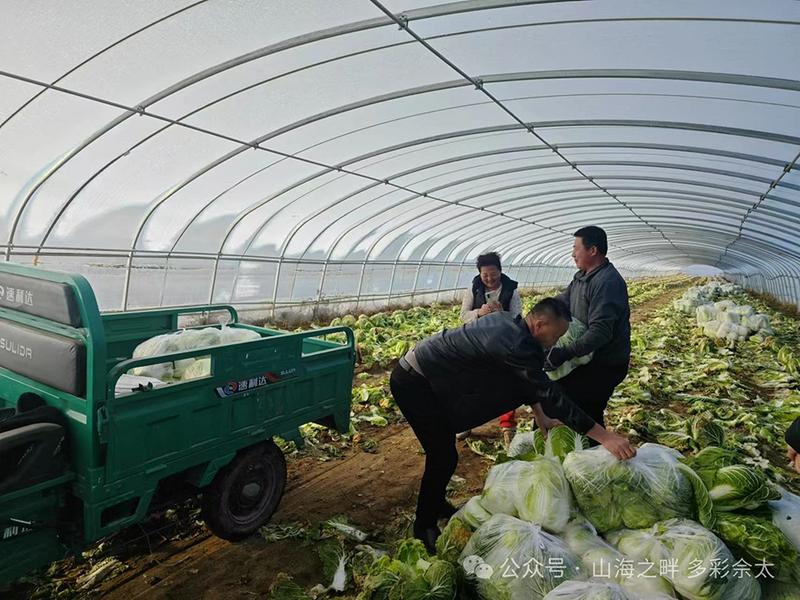 田俊承包33座大棚在夏季种植白梨脆香瓜等瓜果作物后复种大白菜,由于种植时间晚导致开园推迟,且尚未建立稳定的销售渠道,错过了最佳销售时间,导致大部分白菜滞销。大佘太镇紧盯百姓急难愁盼,主动担当作为,充分挖掘本地消费潜力,由镇政府牵线搭桥,整合佘太酒业、禾兴公司2家本地龙头企业及加正德农贸专业合作社、大佘太瑞全恒养殖专业合作社2家农业合作社等资源力量,通过集中销售一批、爱心选购一批,政企联动解决滞销产品销售难题,让“滞销菜”变“暖心菜”。