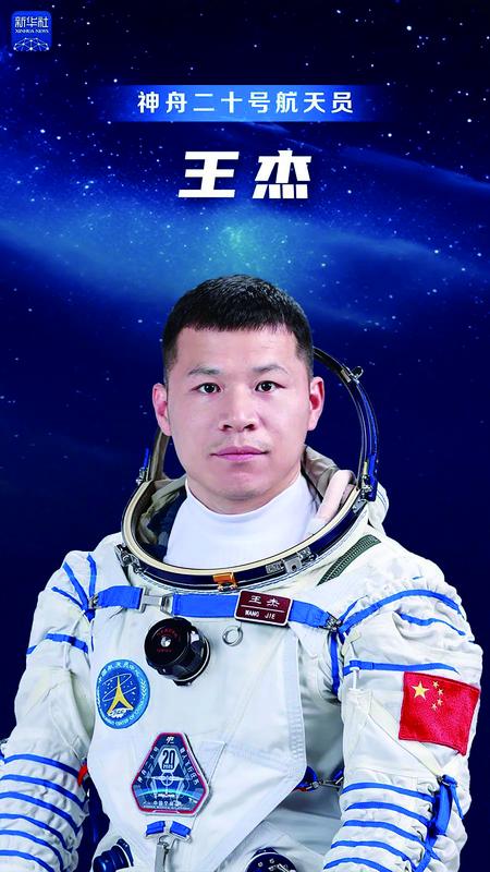 王杰同志简历 王杰,男,汉族,籍贯内蒙古巴彦淖尔,博士学位。1989年9月出生,2021年1月入伍,2009年6月加入中国共产党,现为中国人民解放军航天员大队四级航天员,陆军上校军衔。曾任中国航天科技集团有限公司工程师。2020年9月入选为我国第三批航天员。经全面考评,入选神舟二十号载人飞行任务乘组。