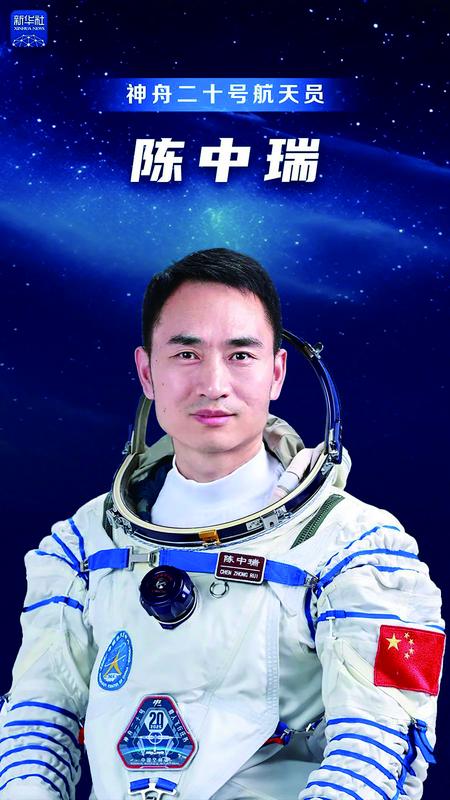 陈中瑞同志简历 陈中瑞,男,汉族,籍贯河南滑县,学士学位。1984年10月出生,2003年9月入伍,2005年6月加入中国共产党,现为中国人民解放军航天员大队副大队长、四级航天员,空军上校军衔。曾任空军航空兵某旅飞行大队飞行员,被评为空军一级飞行员。2020年9月入选为我国第三批航天员。经全面考评,入选神舟二十号载人飞行任务乘组。