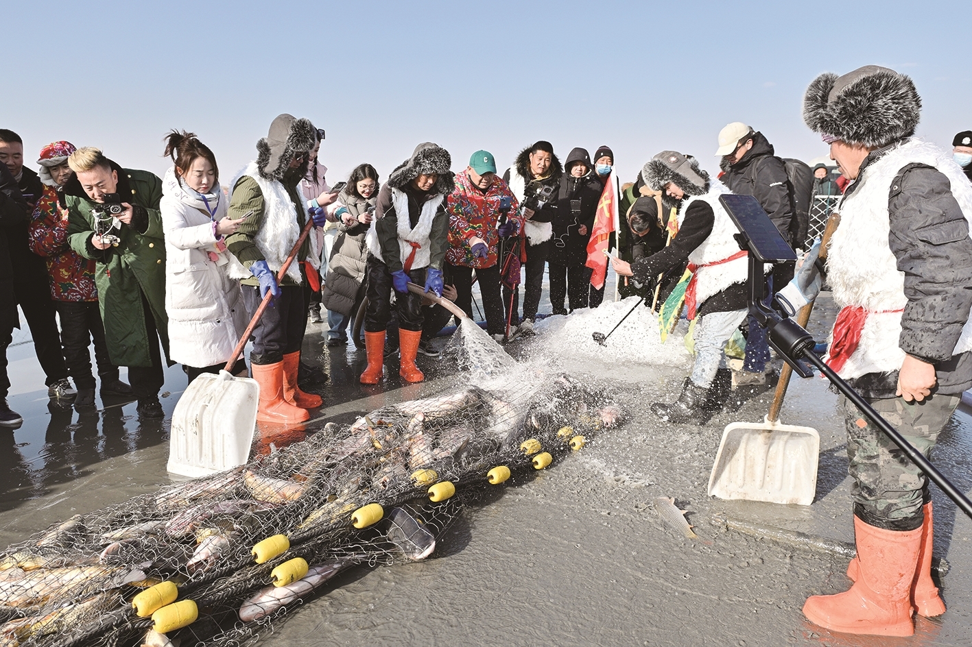 本届冬捕节将持续至1月18日,其间设有冰上拔河、冰上雪圈等趣味赛事,还打造了多个特色体验区,涵盖农特产品展销、地道美食品鉴、冰雪主题打卡及多元冰上娱乐项目。游客们在领略冬捕壮观景象的同时, (下转第四版)