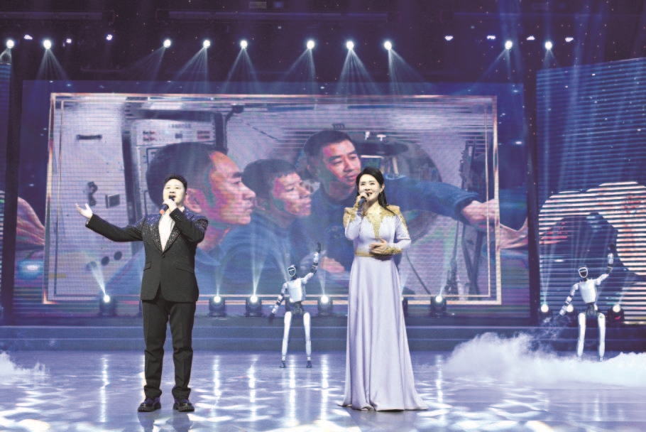 晚会紧扣“情暖河套”核心主题,融合河套文化与马年生肖特色,在舞台科技、节目形式、情感表达上实现全面突破,为全市人民献上一场科技感与烟火气兼具的文化盛宴。本次晚会的创新亮点频频闪现,在全息影像技术基础上全新打造裸眼3D立体视觉系统与超高清纱幕投影矩阵,让观众沉浸式感受了“人在画中游”的奇妙体验。当数字光影与舞台实景无缝衔接,传统歌舞节目也焕发出全新的科技魅力。在歌舞《飞天梦·中国梦》中,人形机器人与演员默契共舞,诠释科技赋能梦想;杂技《百尺竿头》则融合传统技艺与现代美学,展现出了奋进的拼搏姿态。晚会还特设河套民居实景分会场表演,演员们以“一家人”的过年情景,生动呈现吃年饭、看春晚等传统过年习俗,在科技绚烂之外,更传递出质朴的团圆温情与家园情怀。整台晚会荟萃多种艺术形式,既彰显了巴彦淖尔的历史底蕴与发展新貌,也寄托了全市人民喜迎新春、共创未来的美好愿景。