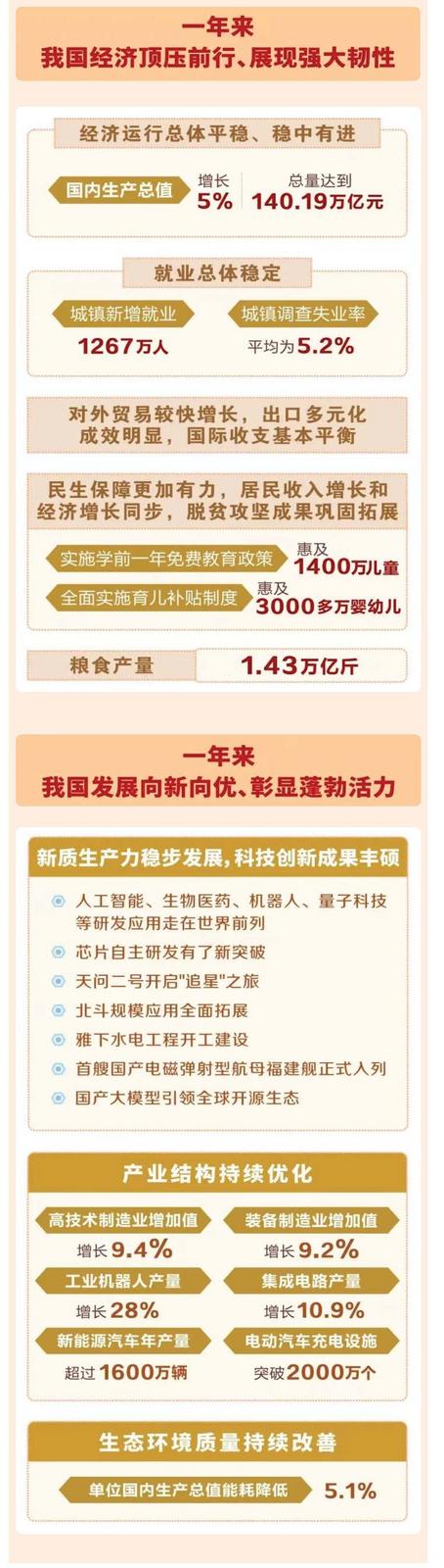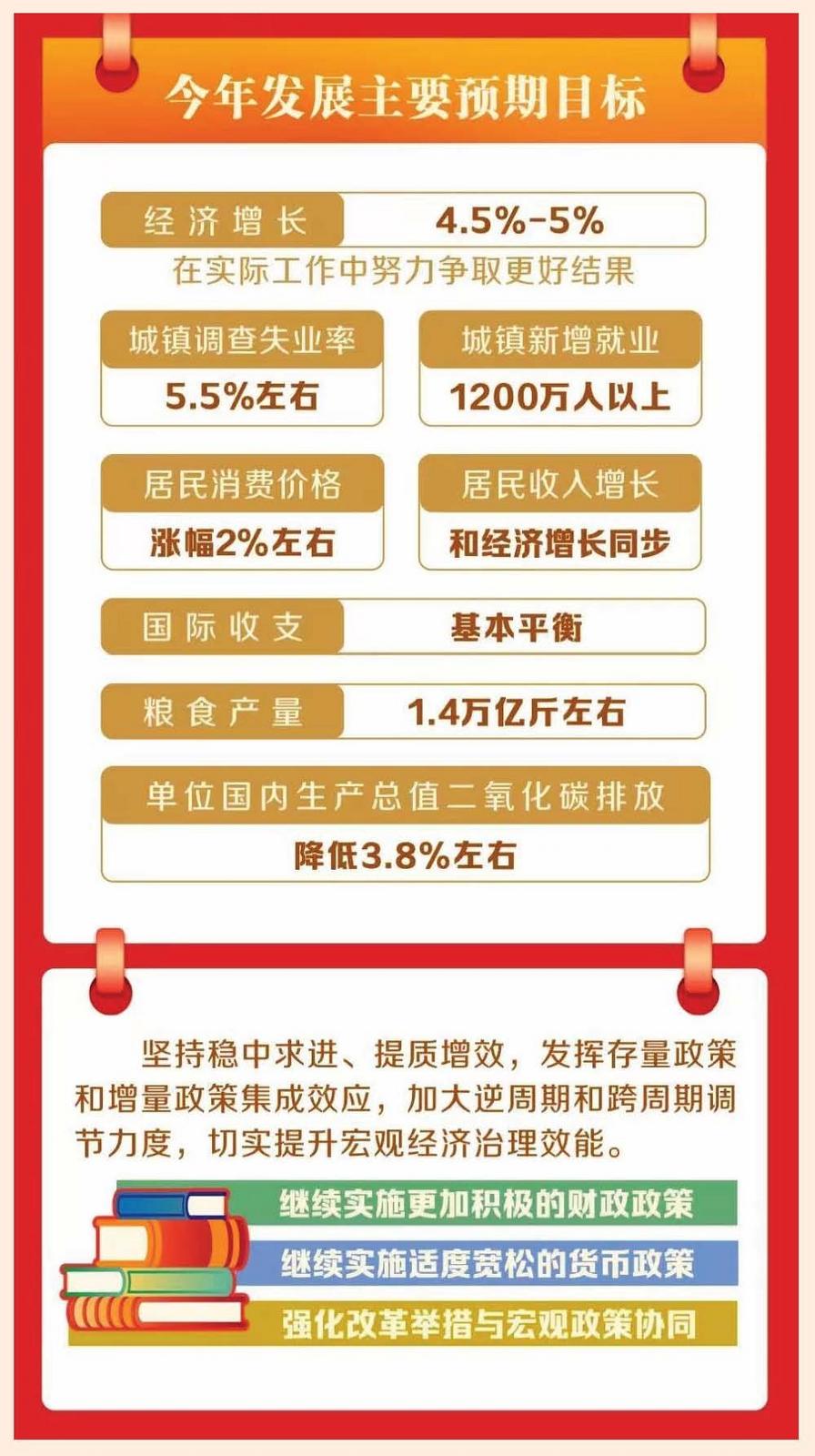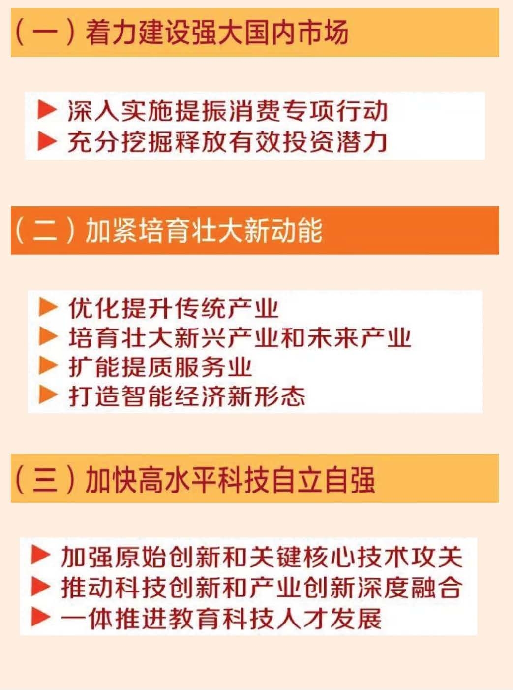 今年是“十五五”开局之年。做好政府工作,要在以习近平同志为核心的党中央坚强领导下,以习近平新时代中国特色社会主义思想为指导,深入贯彻党的二十大和二十届历次全会精神,认真落实党的二十届四中全会和中央经济工作会议部署,完整准确全面贯彻新发展理念,加快构建新发展格局,着力推动高质量发展,坚持稳中求进工作总基调,统筹国内国际两个大局,更好统筹发展和安全,实施更加积极有为的宏观政策,增强政策前瞻性针对性协同性,持续扩大内需、优化供给,做优增量、盘活存量,因地制宜发展新质生产力,纵深推进全国统一大市场建设,持续防范化解重点领域风险,着力稳就业、稳企业、稳市场、稳预期,推动经济实现质的有效提升和量的合理增长,保持社会和谐稳定,实现“十五五”良好开局。