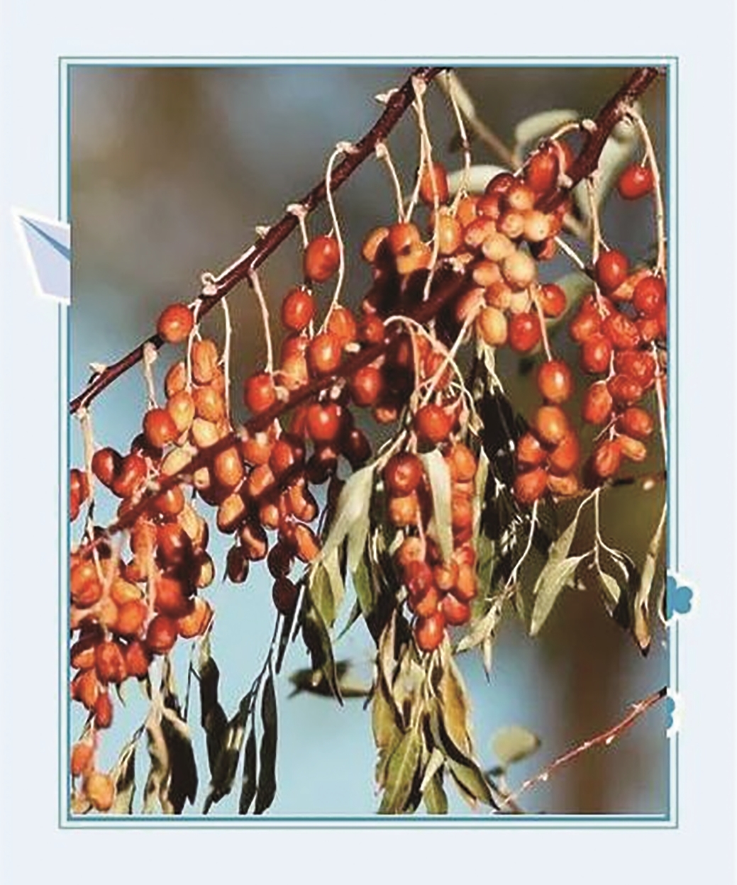 沙枣的成熟,总在国庆前后。尤其是霜降一过,夜气骤寒,那枣上便凝出些亮晶晶的、似伤疤的黑点,此时滋味最佳,是时光与风霜共同酿就的成果。