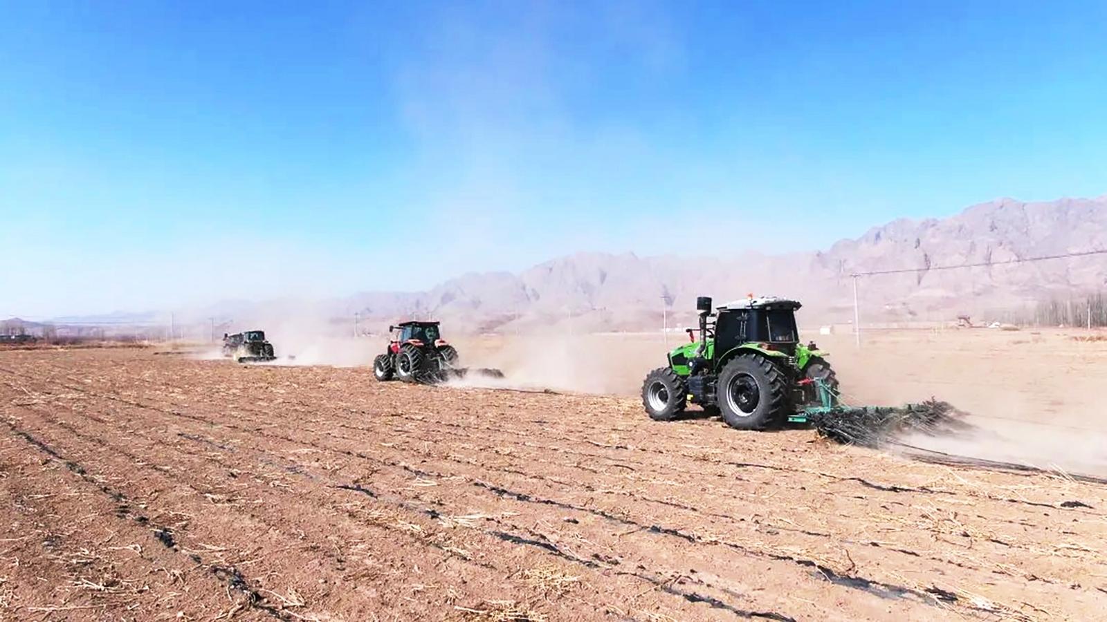 “2025年全旗覆膜面积达18.2万亩,计划于3月底前全面完成大田及设施农业地膜回收工作。地膜回收采取专业化服务组织集中回收与农户自行回收相结合的方式,实现全域覆盖、应收尽收。”乌拉特后旗农村牧区社会事业发展中心主任霍耀介绍说。在巴音宝力格镇的种植基地里,大型残膜回收机正在高效作业,滚筒深入土层,将深埋在根茬间、土壤里的废旧地膜快速捡拾、分离、收集,原本散落田间的残膜被悉数收纳。机械驶过的土地平整疏松,不见地膜残留。看着自家千亩农田快速完成清膜作业,种植户高磊站在田埂上,脸上满是舒心的笑容。“以前地膜烂在地里,影响出苗、减产还毁地,风一吹满村飘,现在配了回收机,我这1000多亩地半天就清完了,土地干净了,今年播种心里也踏实。”高磊一边查看清理后的耕地,一边感慨地说。曾经困扰农户多年的“白色污染”,如今在机械化作业和全域回收机制下,得到了彻底治理。