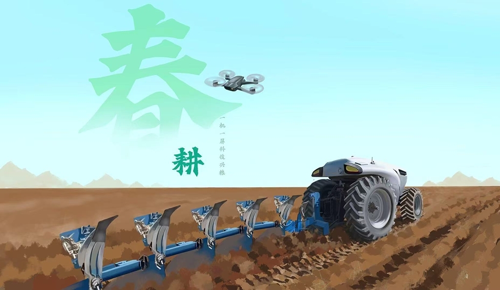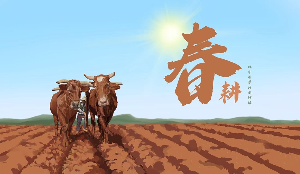 春耕变迁 青年画家郭佳鑫以家乡磴口春耕为主题,创作出三组不同年代的农耕题材绘画作品,通过春耕场景的变化,直观呈现农业生产方式由双牛并犁,汗水种粮,到一机一垄,机械增产,再到一机一屏,科技兴粮的迭代升级。