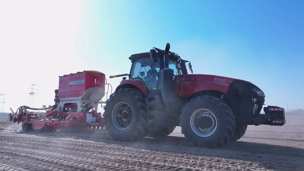 搭载北斗导航系统的播种机在农田作业
