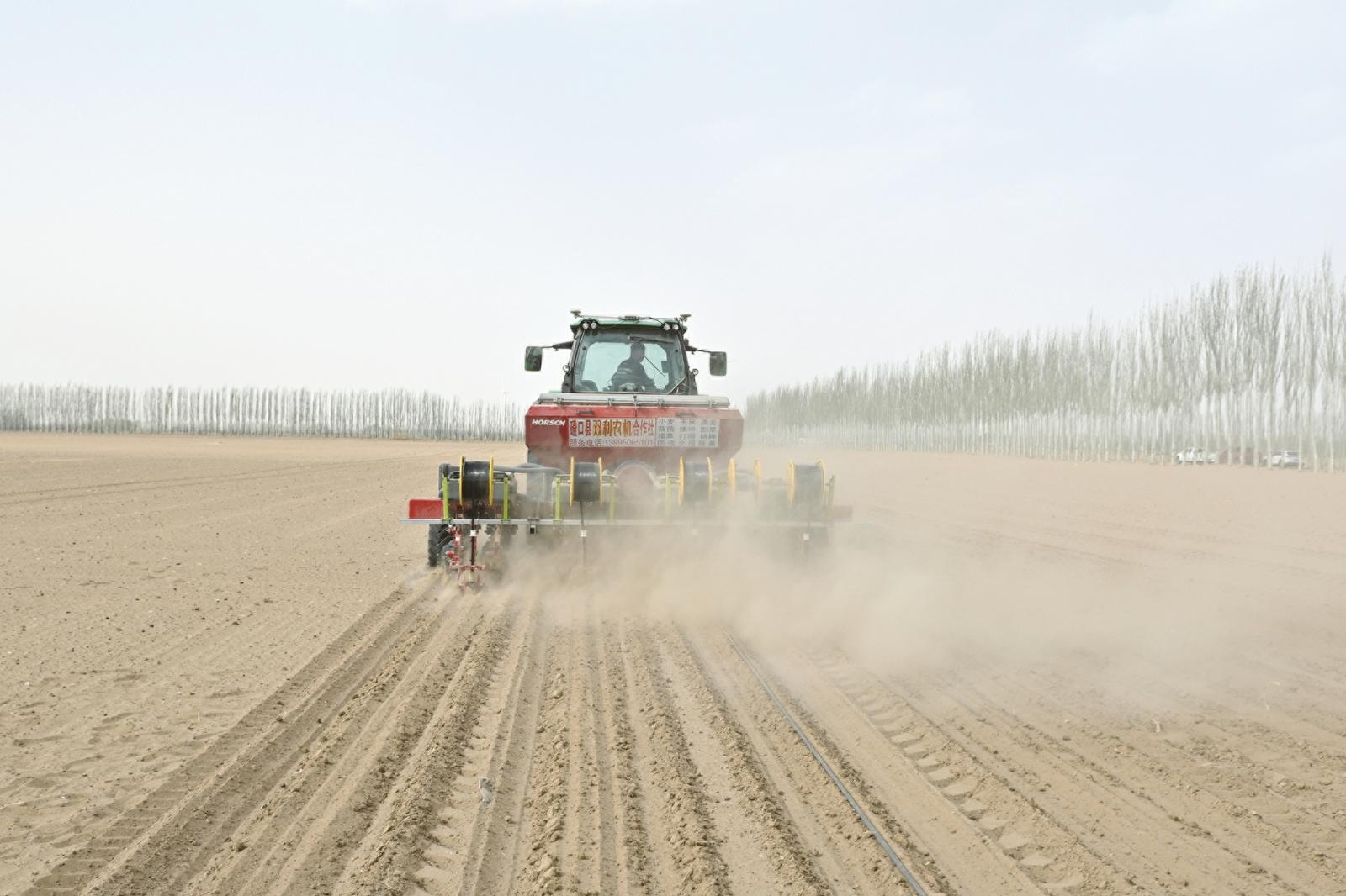 王勇是沙金套海苏木的种植大户,今年流转了7000亩土地,准备种植玉米。这段时间,他用整地机对土地进行了平整,经过作业后,无膜浅埋滴灌沟播机就能在平坦的耕地里进行精准播种。