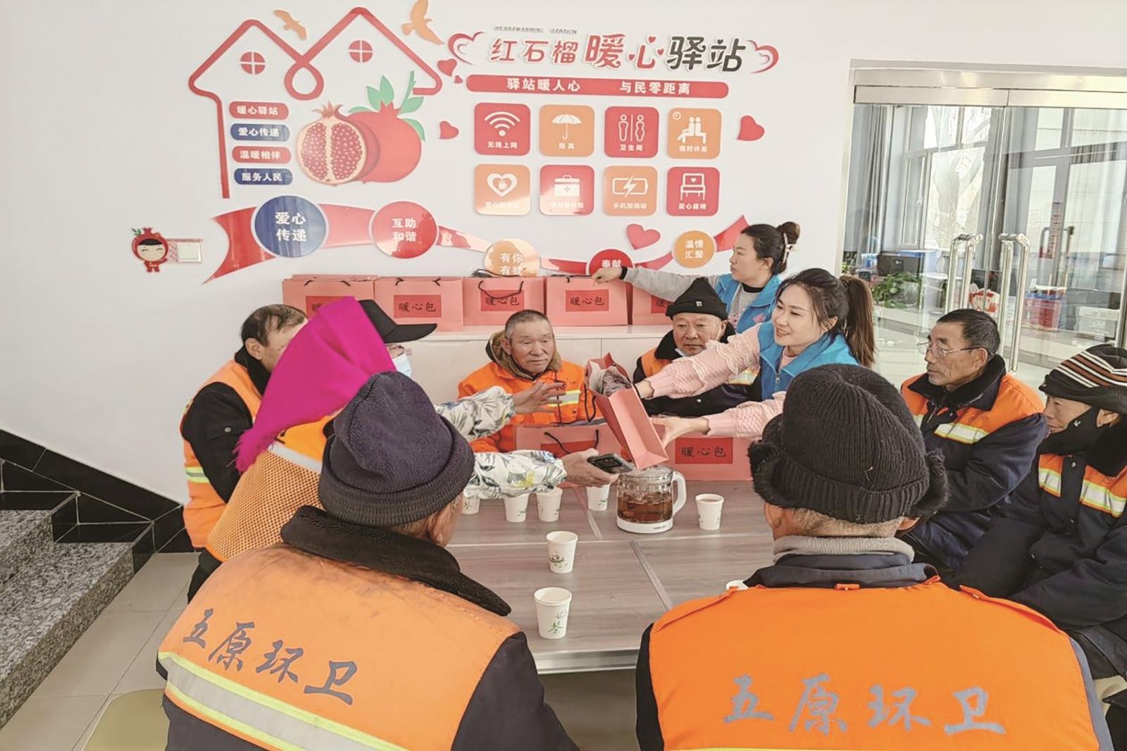 目前,五原县社会工作服务中心所属13个社区全部建起“红石榴暖心驿站”,覆盖县城各居民小区、商圈和平房区等新就业群体密集区域。从单一“歇脚点”升级为集便民服务、政策宣讲、文化交流、诉求收集于一体的综合性服务阵地,让“新”群体随时能找到“家”的温暖。