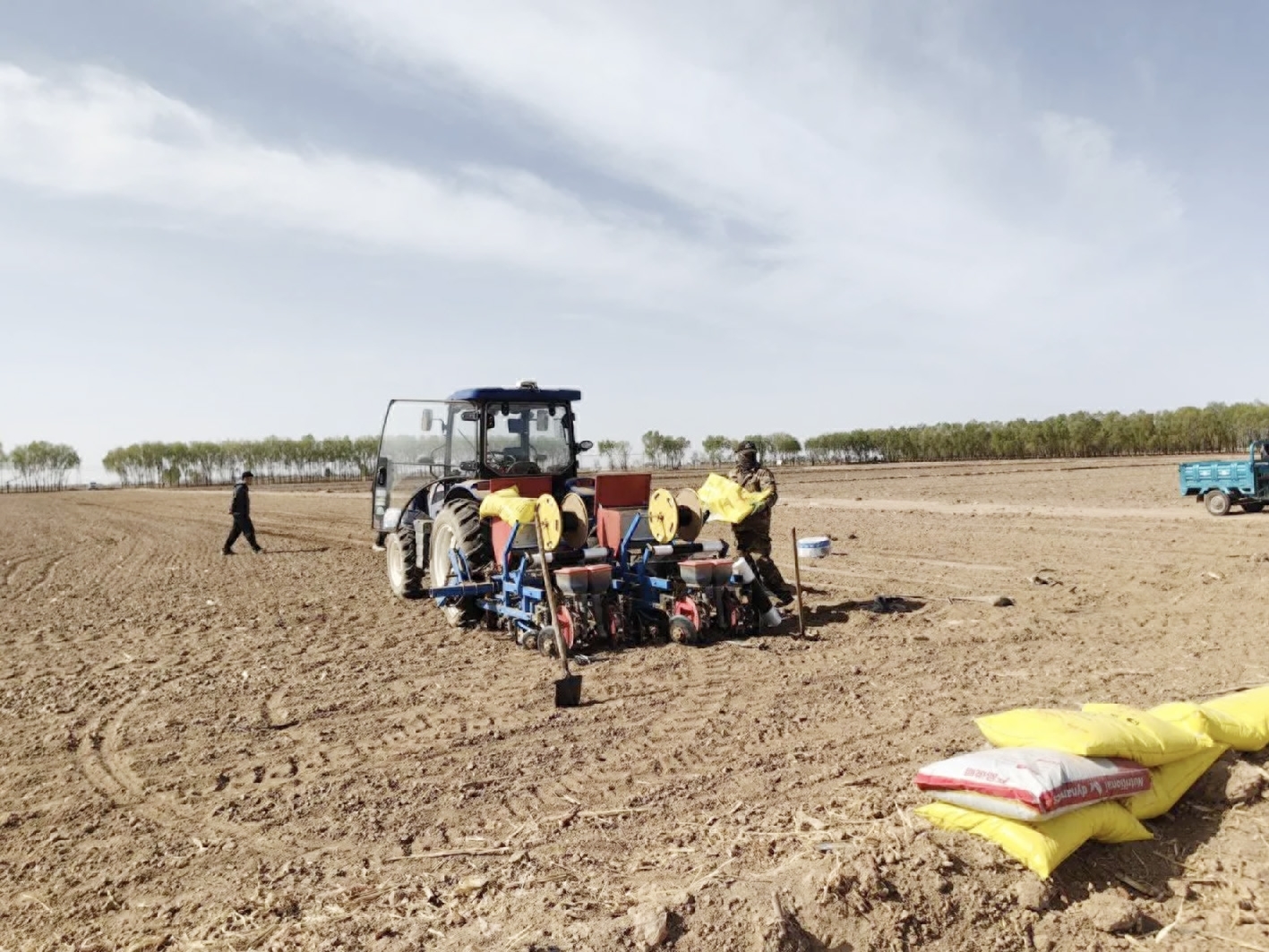 本报海流图讯(通讯员 张丽 文/图)4月24日,乌拉特中旗乌加河镇宏丰村玉米吨粮田园区开始播种。
